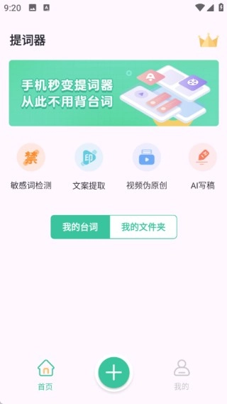 首页中心配备了文案提取、AI写稿等各类实用功能。