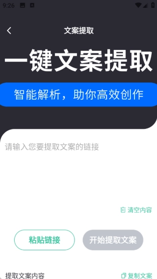 用户可以将文案提取,智能解析,帮助你高效创作。