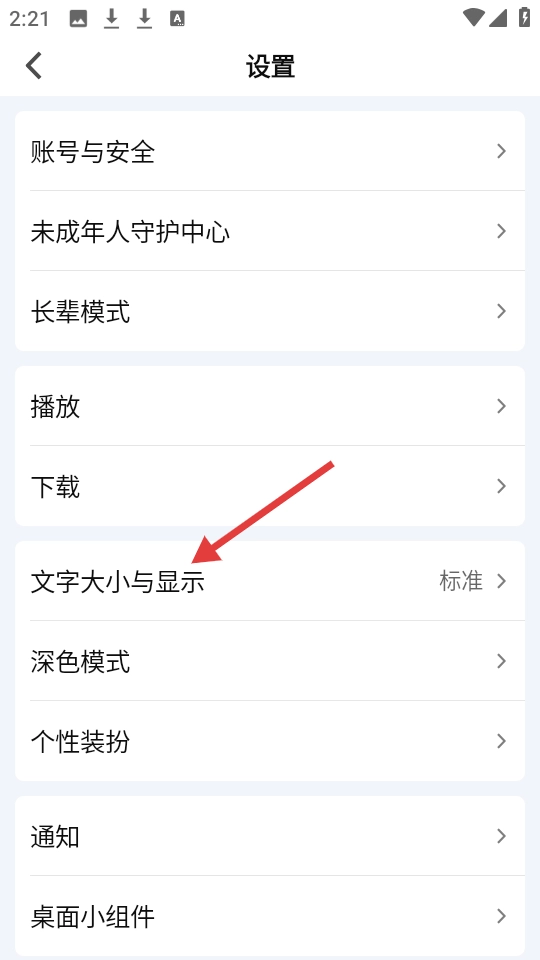 在设置页面找到并点击【文字大小与显示】选项,即可进入文字大小的设置界面。