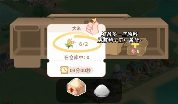 手指长按图标,会弹出窗口展示当前农作物的详细信息。等后续解锁更多农作物后,大家同样能借助这种方式快速了解库存情况、成熟所需时间以及种子的价格,再根据自身需求来规划要种植的农作物种类和规模。
