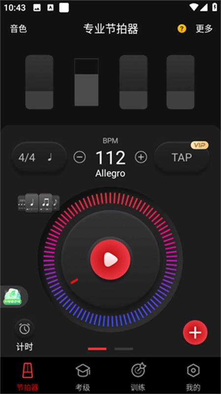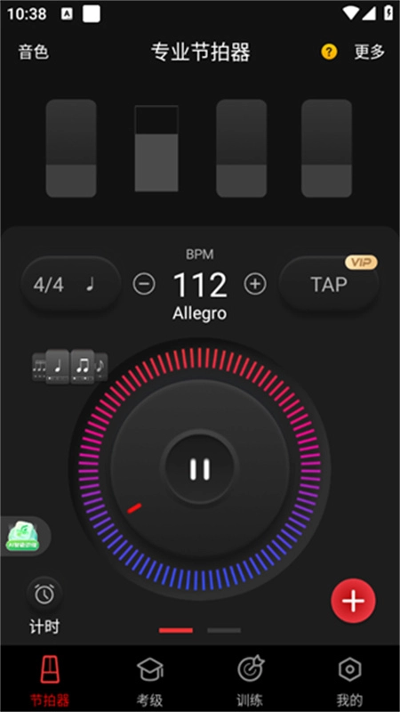 节拍器是一款专业的节奏节拍调节工具,通过它能轻松完成日常乐器的节奏节拍校准,也可作为高级乐器节奏练习的辅助训练工具。软件操作简单易上手,稍懂音乐的人就能快速掌握使用方法,还提供多种节奏可选、各类音色自由切换以及自动调档功能,助力你跟随节拍把握节奏律动。