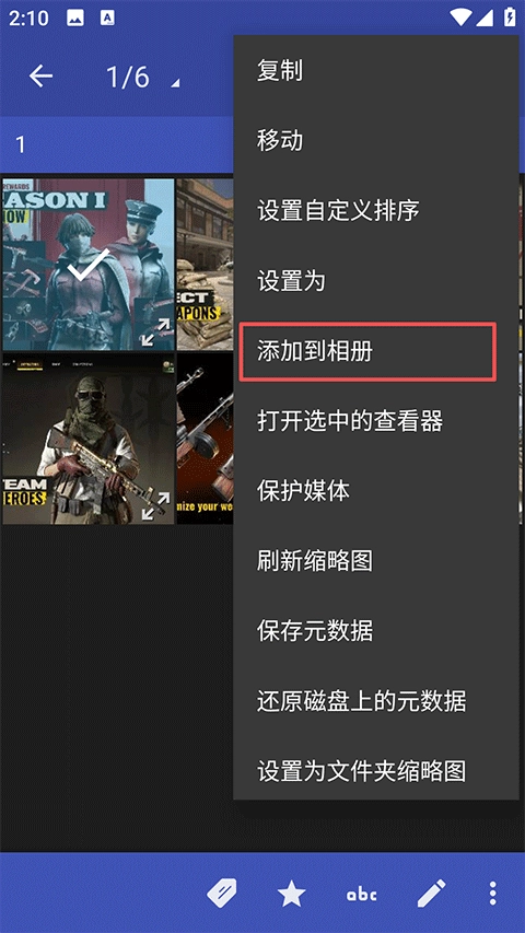 标准相册本质上是一组可从设备不同位置添加的图像或视频集合。向相册添加媒体时,文件不会被复制或拷贝,因此不会占用存储卡的额外空间。进入选择模式(长按图像)并选择“添加到相册”,即可添加媒体。也可以通过点击图像或使用快速范围选择功能来选择多个图像。