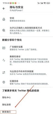 在隐私安全设置页面里,向下滑动至页面底部,点击【联系我们】选项。