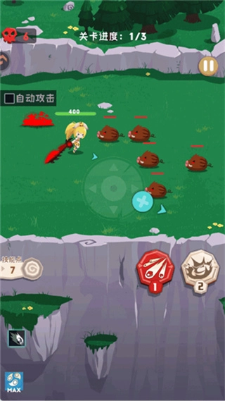 运用右侧的技能可以更有效地消灭敌人,每次使用都会消耗一点技能点。