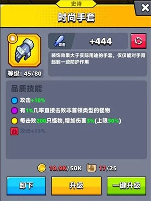 手套:佩戴时尚手套时,“1%秒杀精英怪”这个属性总能带来惊喜;而金时尚手套更是厉害,不仅能让你在5分钟左右击败2000只怪物,还能增加30%的伤害,这个属性确实够猛。