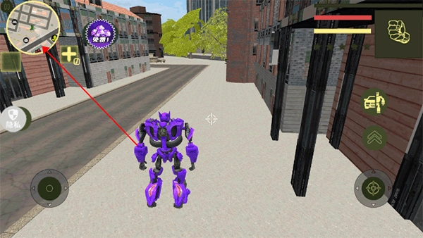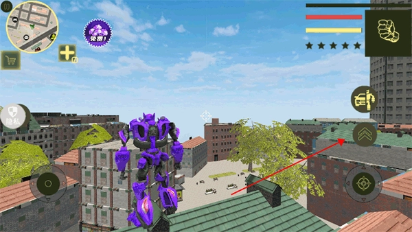 点击右侧的按钮,角色就能变形成汽车形态展开高速追击,要是再点一次,就会恢复成机器人形态参与战斗。
