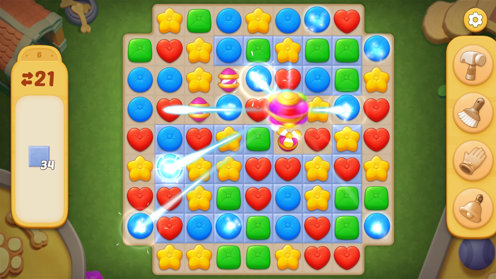 点击就能触发释放效果,就像这里的彩虹球,它可以一次性消除某一种颜色的所有方块。