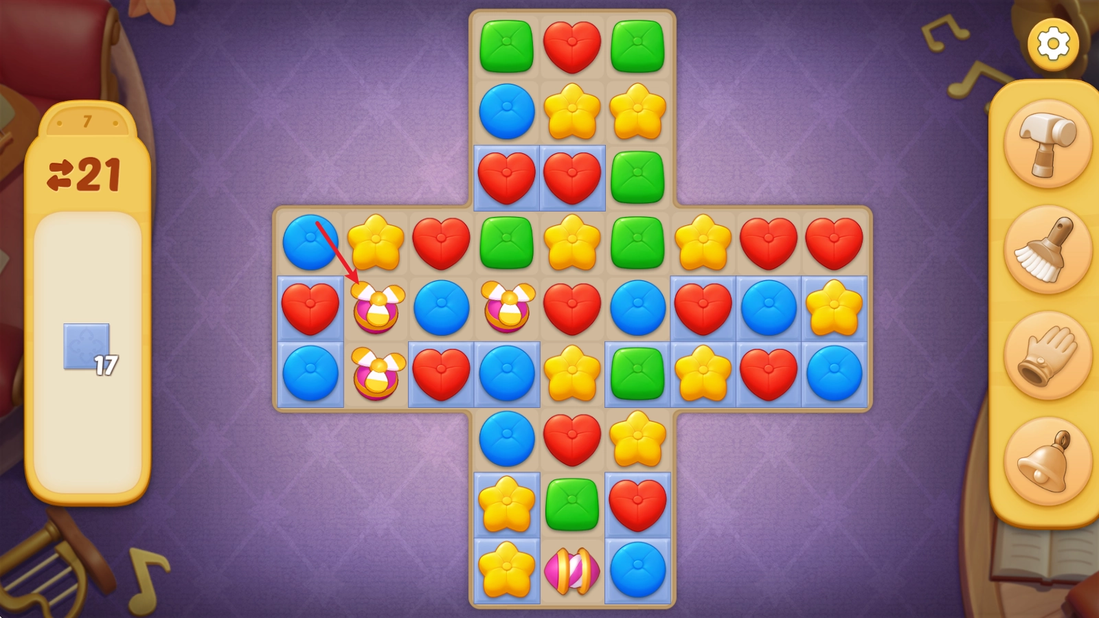 开启关卡挑战后,在左侧就能够看到关卡的目标和步数限制。