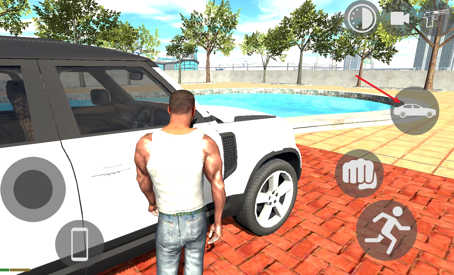 靠近车辆后就可以点击右侧按钮上车。