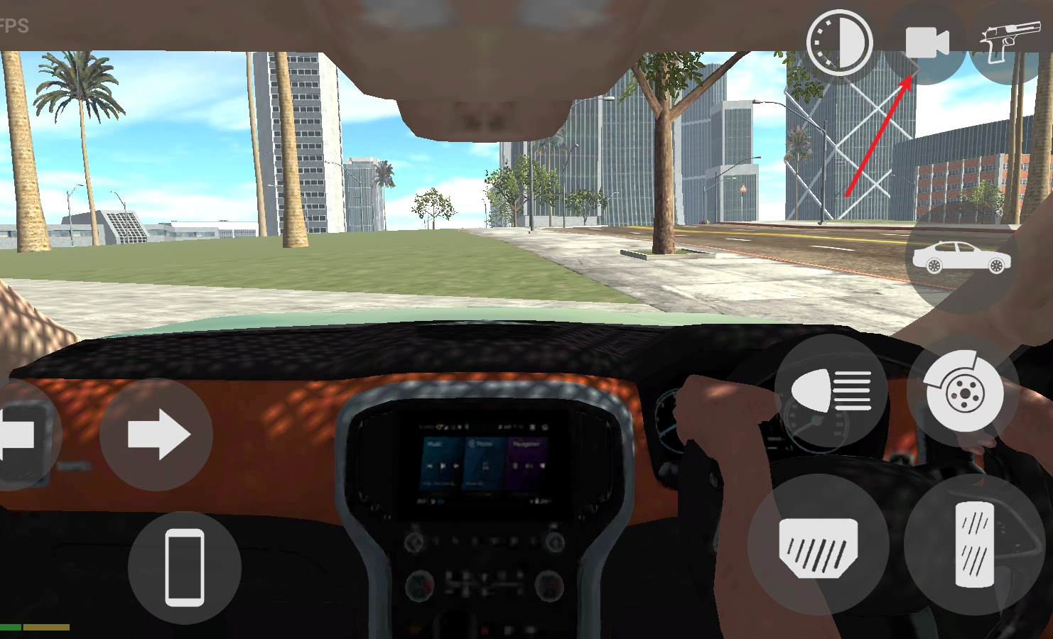 点击右上角的摄像头图标,我们还能切换至车内视角来进行驾驶操作。