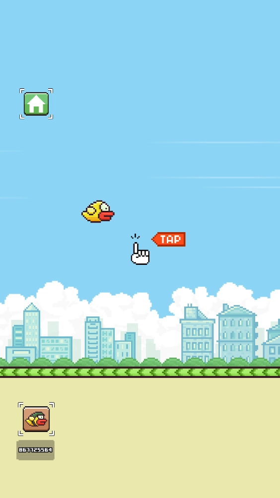 挑战开始后,我们得持续点击屏幕来调整小鸟的飞行高度,帮助它顺利穿过障碍物。