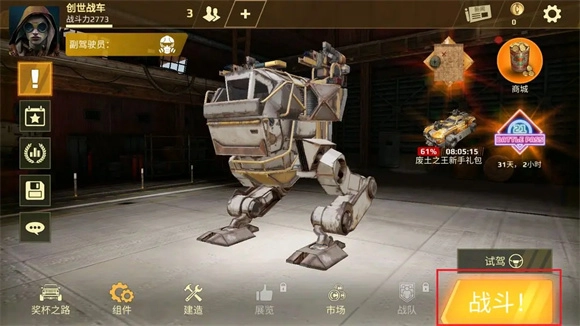 在创世战车移动版里,存在着一个和端游相近的高亮战斗按钮以及一个试驾按钮。点击试驾按钮,就能在车库中对自己的战车展开测试驾驶;要是点击战斗按钮,那么会先进入模式的选择界面。
