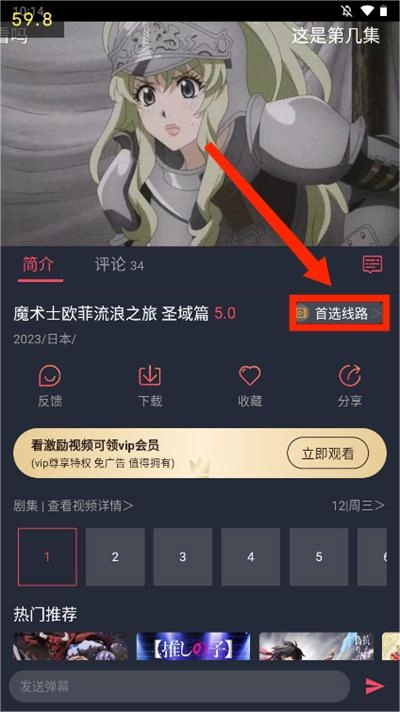 找到并点击图中所示的首选线路,接着随意点击另一条线路就可以了。(新版本里的首选线路可能是720p,直接点击该位置即可)