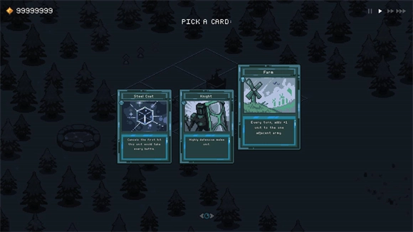 游戏开始后,玩家能够选择一张卡牌,用于建设自己的王国或是招募士兵。