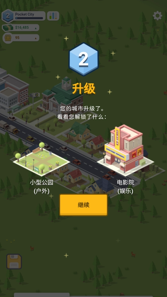 口袋城市(Pocket City)是一款卡通风格的城市建设游戏。在游戏里,我们将进入一座尚未开发的城市,成为这里的市长。从一座小小的市政厅起步,逐步规划并建设住宅区、工业区、商业区、发电站等不同功能区域,吸引更多居民入住,提升城市的经济收益,让城市一步步走向繁荣昌盛!在这里,你可以尽情发挥想象力来建造城市,无论是摩天大厦、豪华住宅还是巨型工厂,各种风格任你挑选,打造出独一无二、专属于你的城市!