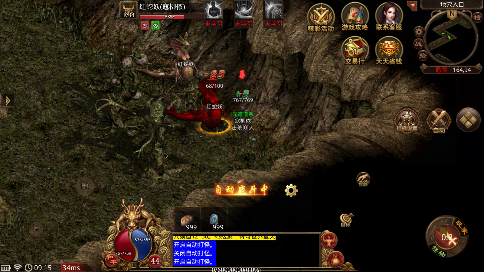 接下来就可以去挑战白蛇金刚了。之后的升级主要依靠打怪,拉镖只能作为辅助手段。
