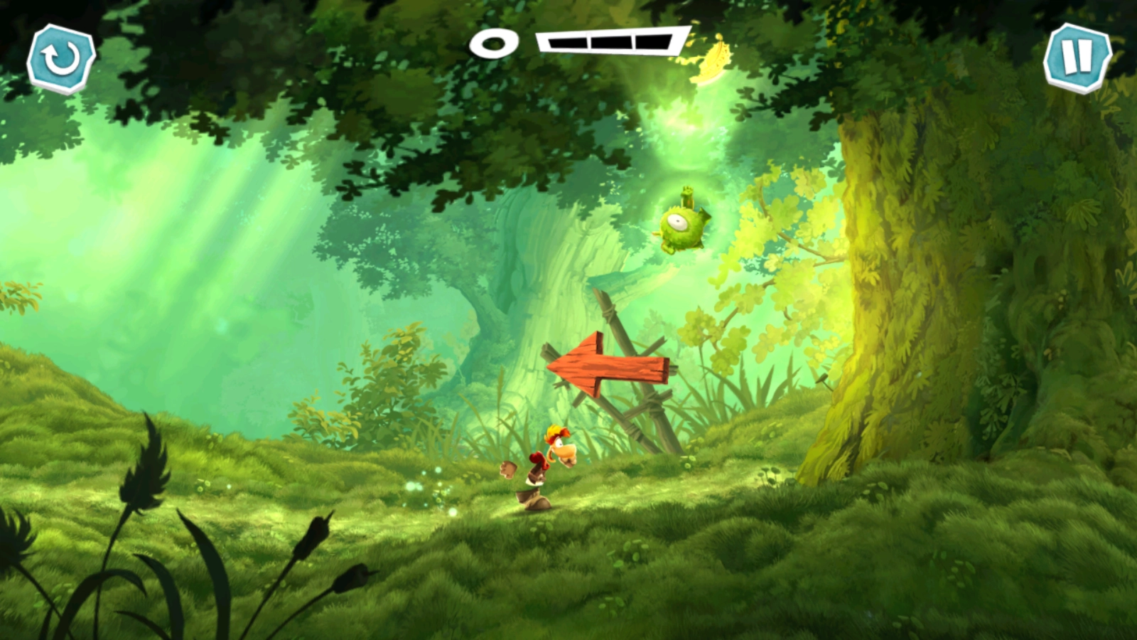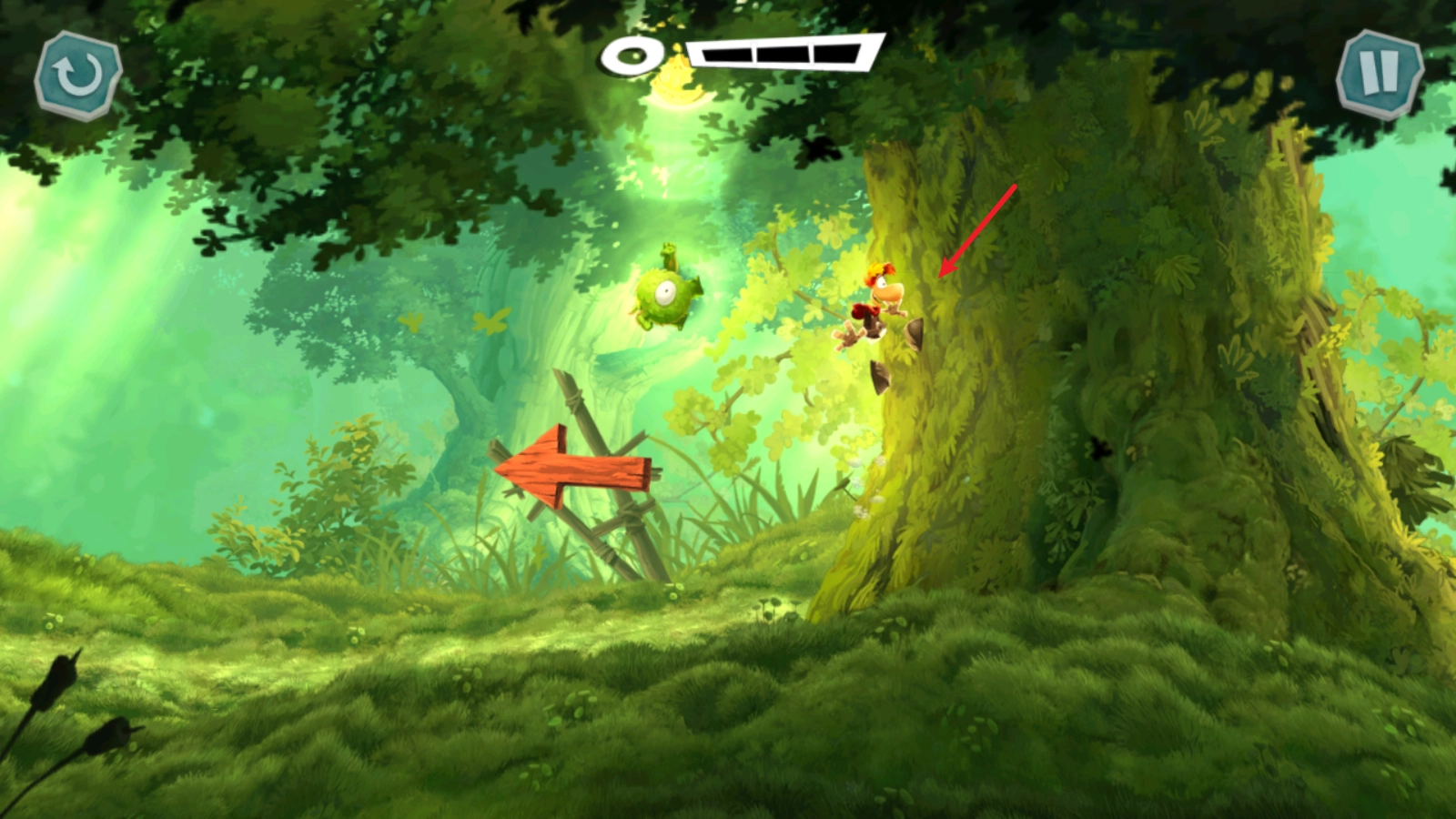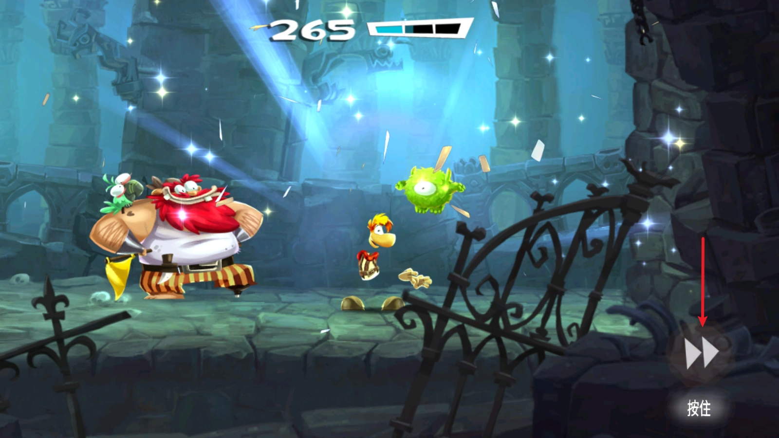 正式开始后,滑动屏幕雷曼就会开始奔跑了。