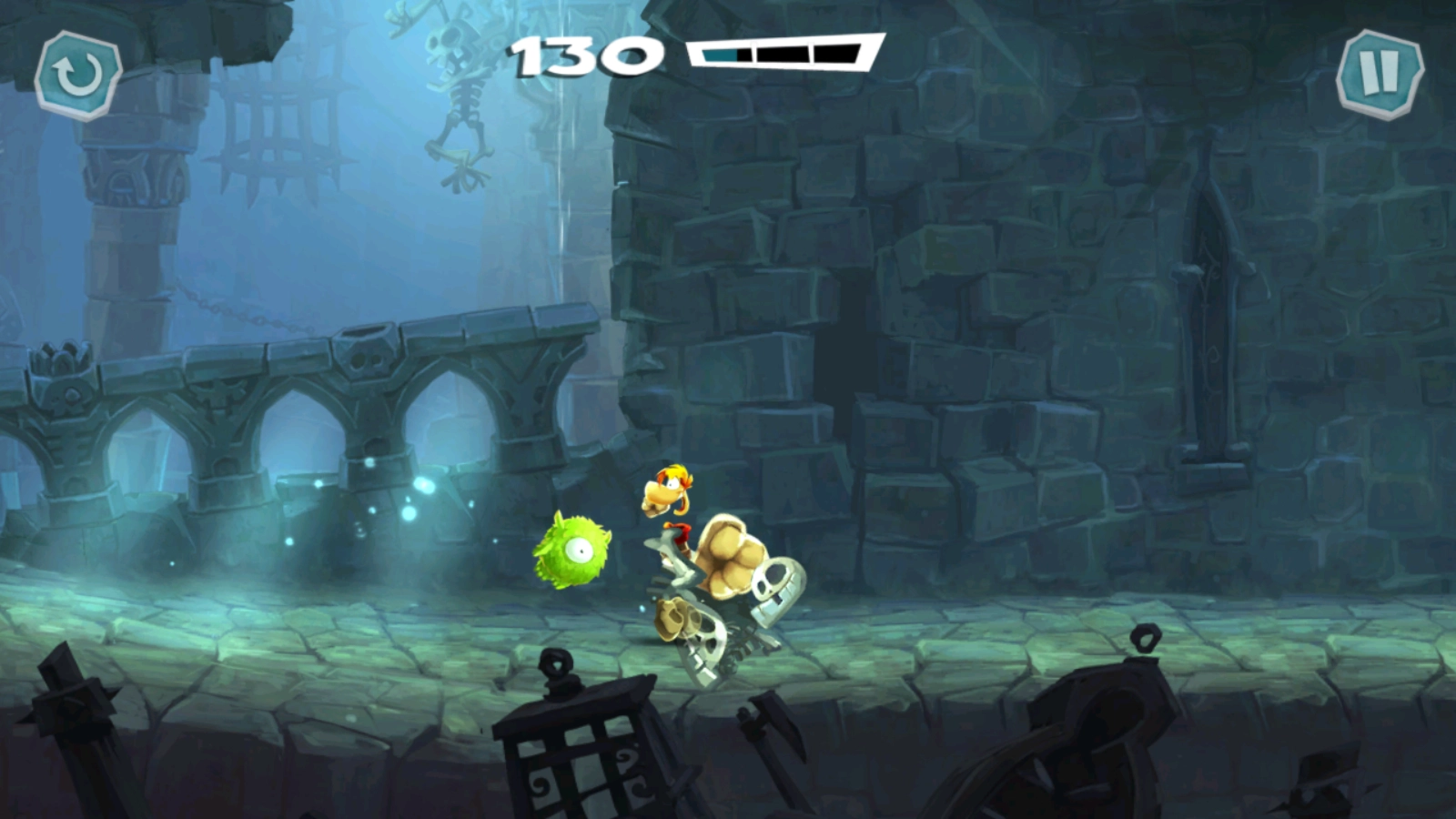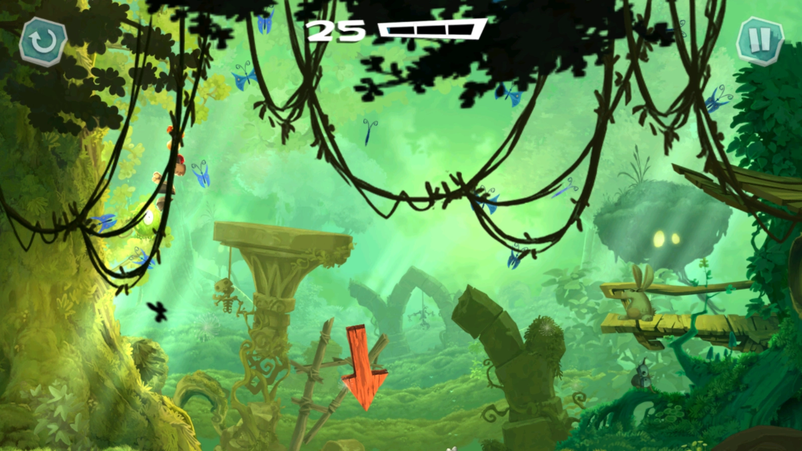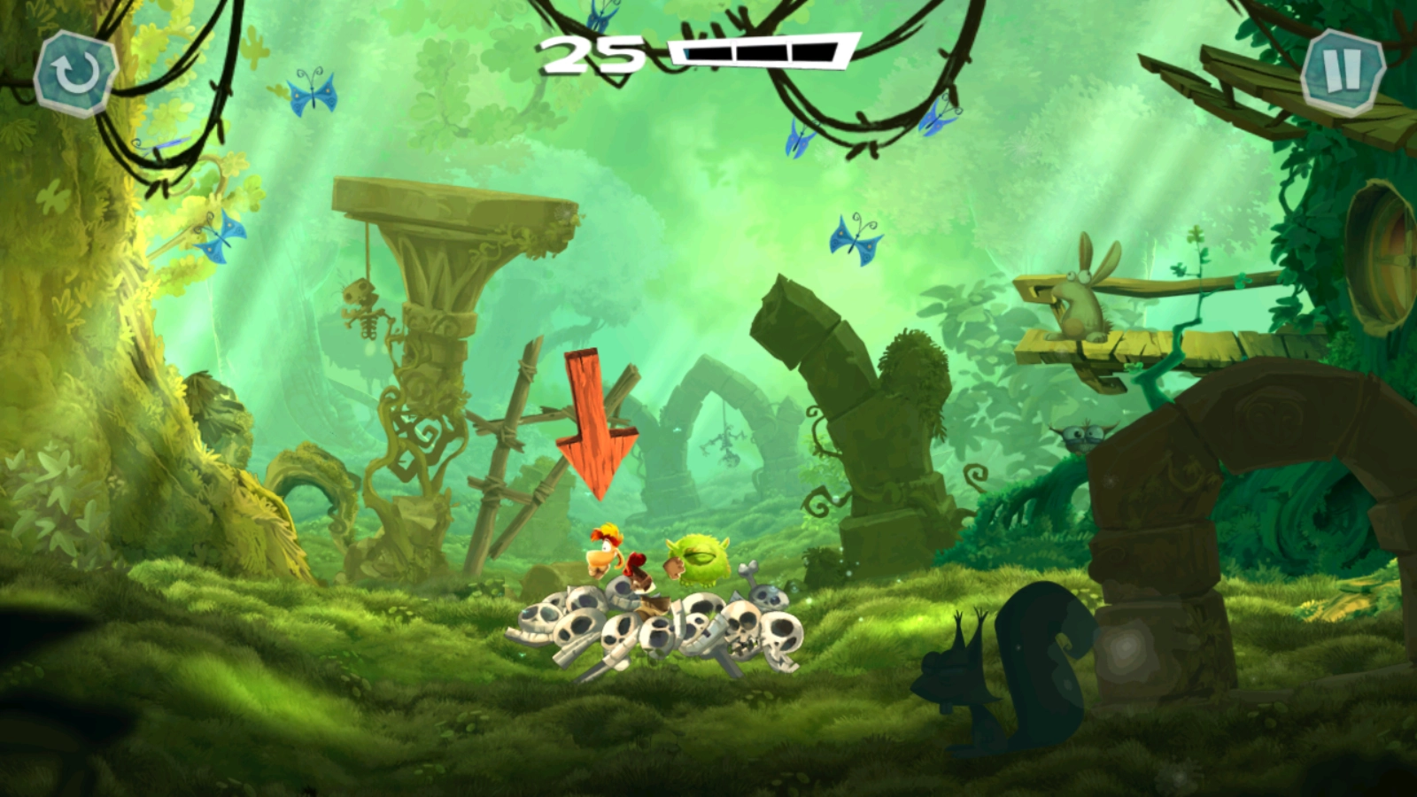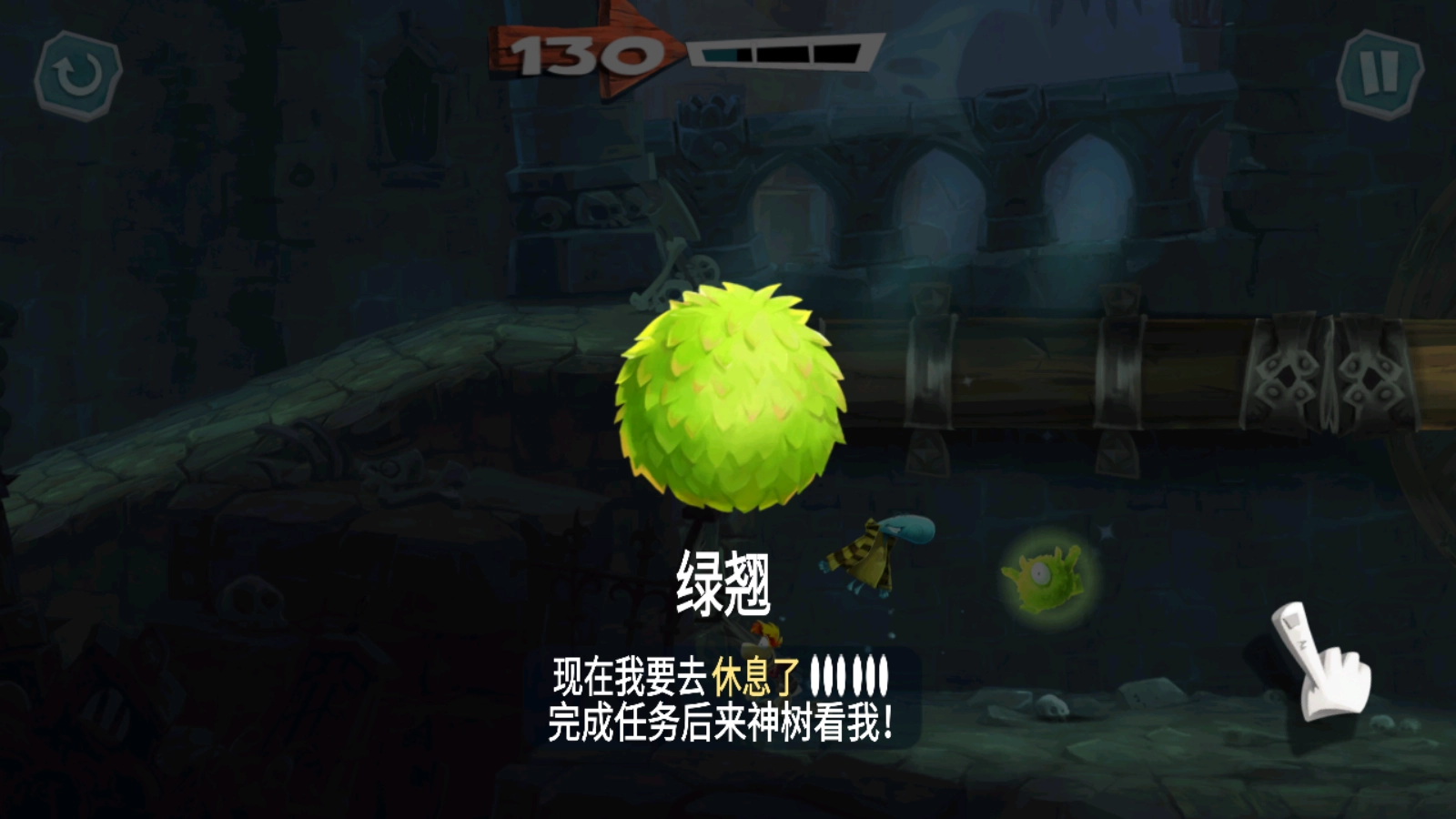正式开始后,滑动屏幕雷曼就会开始奔跑了。