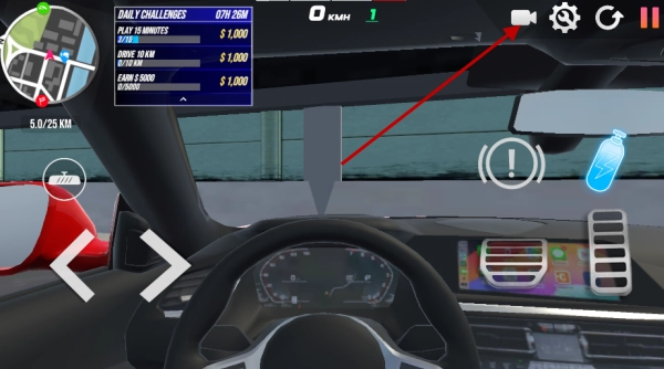 点击右上角的摄像机图标,就能在车内视角、追尾视角与自由视角之间灵活切换,体验不同角度带来的驾驶乐趣。