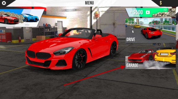 回到主菜单后,点击右侧标注着“GARAGE”的车库入口,就能进入属于你的专属车辆收藏空间。