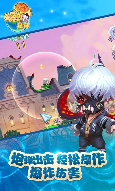 《弹弹星球》是一款单手就能玩得超尽兴、福利多到领不停的全新休闲弹射游戏! 【公平竞技,实力说话】 全属性平衡设定,赛事里见真本事!从公平排位起步,一路冲击巅峰对决封神,零氪金也能直达王者擂台!单指长按瞄准抛物线,松手就能发射炮弹!用各种秀操作轰炸对手!胜负不仅看技术,更考验脑洞——地形刁钻?风力强劲?随机应变,开启每回合都充满变数的弹射对决! 【碎片时间随时开玩,组队开黑欢乐无限】 一局仅需3分钟,碎片时间就能和好友组队开黑!要是队友坑了怎么办?可不能让2v2变成1v3,那就给他来发炮弹,把他炸上天解压(开玩笑的啦hh)! 【近300件潮流装扮,打造专属个性形象】 换上五彩斑斓的服装、装备发光的翅膀、站在带BGM的专属底座……星球秀场为你量身定制,衣品值拉满才能成为星球顶流!不管是高冷帅哥还是可爱少女,换装比射击还让人上头! 【近200种特色武器,战术搭配随心所欲】 轰隆炮能给对手挖大坑,狗头枪自带弹簧追击,甚至能用“疯狂星期四”抢到的鸡腿狂轰滥炸……自由搭配专属武器库,在弹弹星球,你就是独一无二的战术大师! 【担心氪金才能玩?不存在的!福利拿到手软】 不肝不氪,上线就有海量福利!缺什么就送什么,福利多到点都点不过来,根本不用愁!