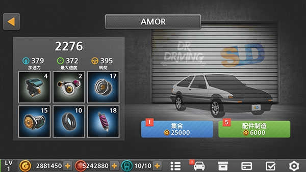 进入目标车辆页面,点击【配件制造】开始组装过程。