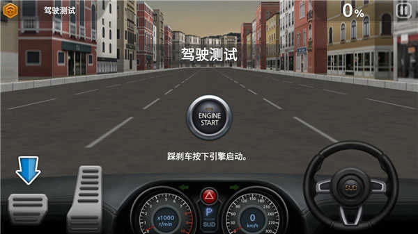进入驾驶界面后,先踩下刹车,再点击启动按钮,即可发动引擎。