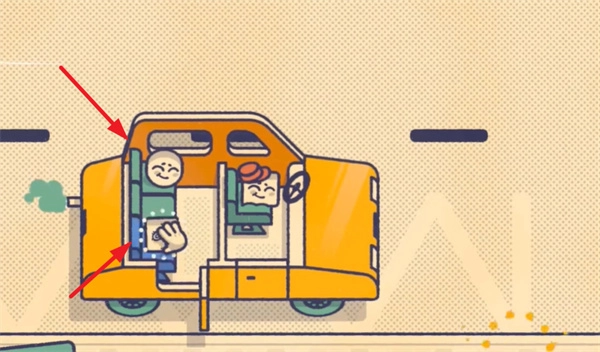 1-1-2:让位于右侧的角色坐在车子的左边位置,位于左侧的角色坐在车子的右边位置。