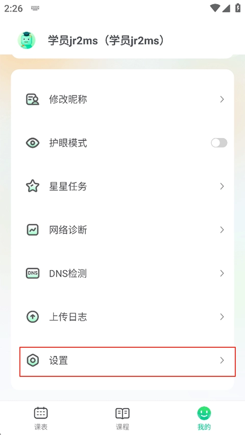 打开新东方云教室,点击我的-设置;