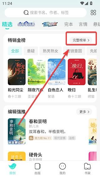回到首页后,向下滑动页面就能找到【畅销金榜】板块,点击进入完整榜单页面,即可查看当前最热门的书单推荐