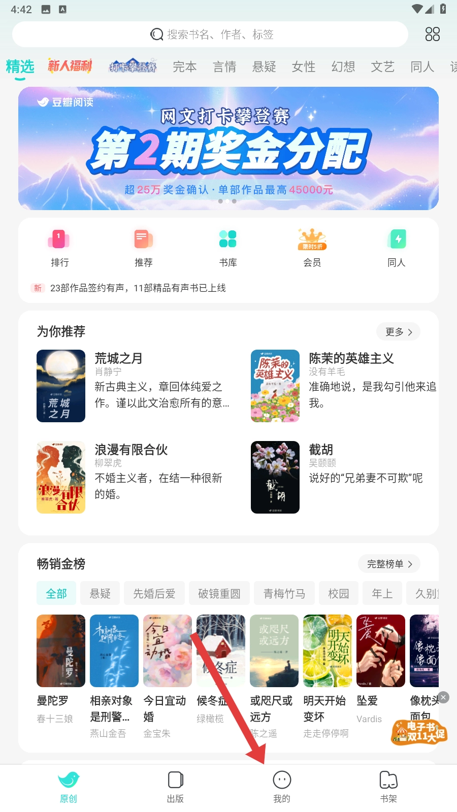 我们打开豆瓣阅读后,进入【我的】页面,这是投稿的第一步哦。