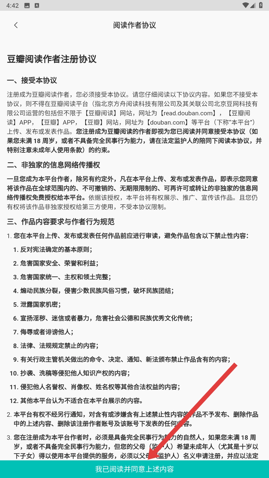 你可以先浏览作者协议页面,然后勾选【我已阅读并同意上述内容】的选项,完成协议确认这一步骤后,就能够着手进行投稿操作了。