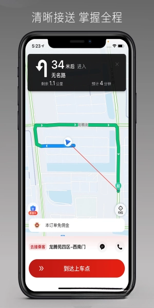极简操作界面:界面针对驾驶场景进行了优化设计,订单、收入、导航等关键信息清晰直观,接单、导航、完单等核心操作都做到了一步直达,尽可能降低驾驶时分心的可能,为安全驾驶提供保障。