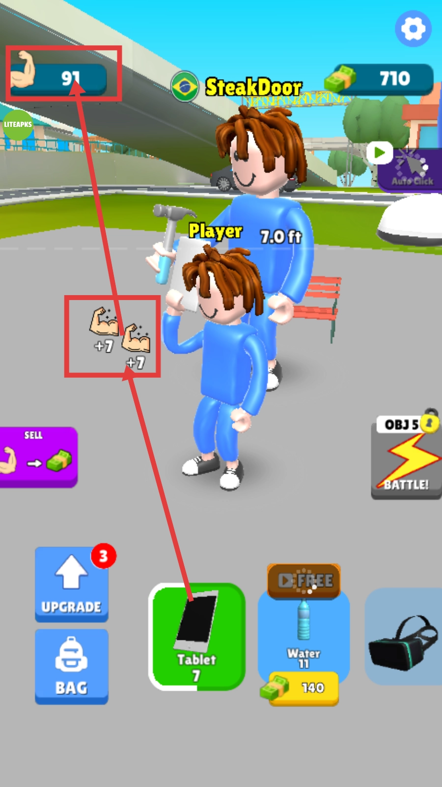 持续点击角色,留意【肌肉数值-91】与【+7-+7】的反馈提示,以此快速积累肌肉数值。