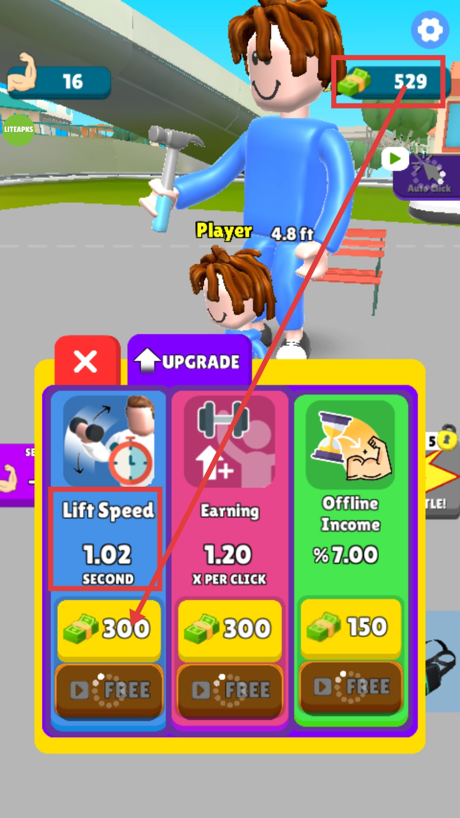 使用529枚金币升级【Lift-Speed-1.02-SECOND】,以此提高锻炼效率,让金币资源得到合理利用。