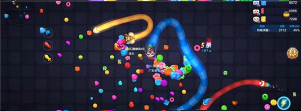 你可以把其他小蛇圈进自己的身体范围内,等它们自己撞上来,这样就能轻松拿到击杀和糖果啦!