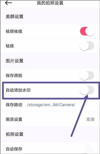 点击“自拍设置”。
