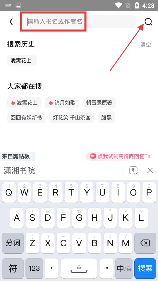 在搜索框输入书名或作者名,点击搜索。
