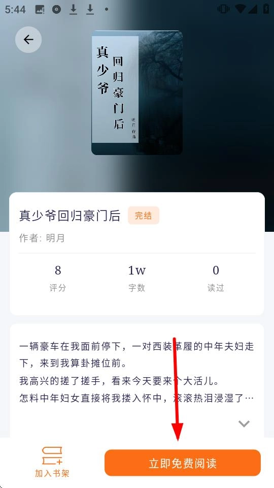 在搜索结果里点击《真少爷回归豪门…》就能进入这部小说的详情页面。