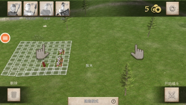 在关卡战斗开始前,玩家需点击画面左上角的兵种,把它们放置到左侧的格子里,部署完毕后点击右下角就能开启战斗。