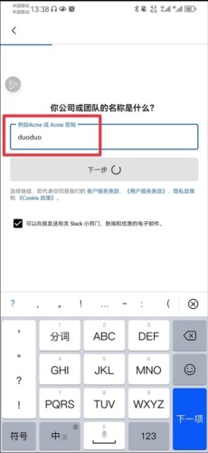 然后跟随步骤创建公司或团队的名称、频道等操作