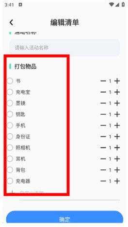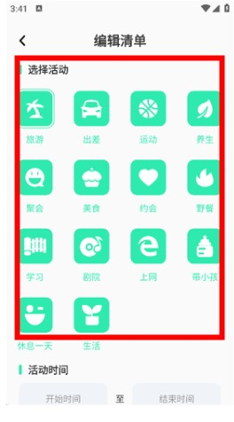 输入时间、预算、活动名称,以及需要的随行物品。