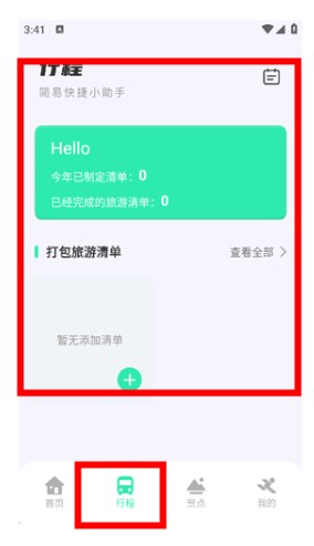 进入“行程”页面,新增旅行计划。