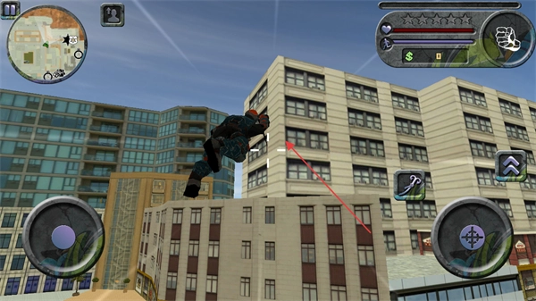 采用虚拟摇杆搭配技能按键的经典布局设计,绳索发射、攻击、移动等操作简单直观、易于理解,新手能快速上手并灵活运用超能力,从而专注于探索与战斗的核心体验。