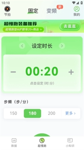 每天给自己定个小目标,规划好锻炼时长,就能开启超慢跑计时器,还会定时提醒你哦!