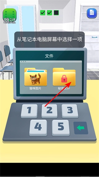 先在对应的平台找到这款免费游戏,打开游戏后点击“开始”按钮进入游戏界面,之后会触发剧情。当遇到角色询问身份时,回答“员工,IT主管”就能让对方离开。接下来在办公室里打开电脑,输入密码后窃取公司的机密文件,这样就完成了第一关的任务。