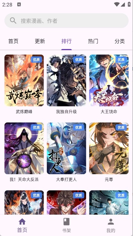 排行页面根据当前热度将漫画进行了排序。