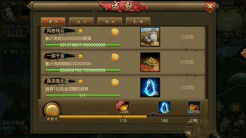 完成方法:蓝绿将获取难度较低,可优先从此类武将入手,把每个国家的蓝绿将都收集齐全,数量就能达到80个左右,100至150这个档次的目标很容易达成。