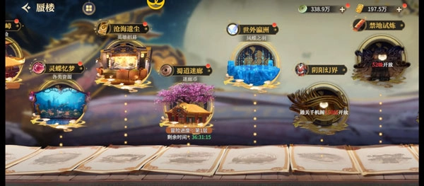 这个玩法是逐层挑战,每通过一层就不能再回头挑战。除了每层通关都有奖励外,每累积通过十层还会额外发放奖励,而且这些奖励的吸引力都很强。玩家在游戏前期所需的突破丹,大部分都是通过这个玩法获得的。