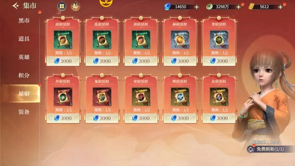 在玩法中获取的星灵石,能够用来购买星宿技能书,以此激活自身的星宿技,进而提升人物的战力。